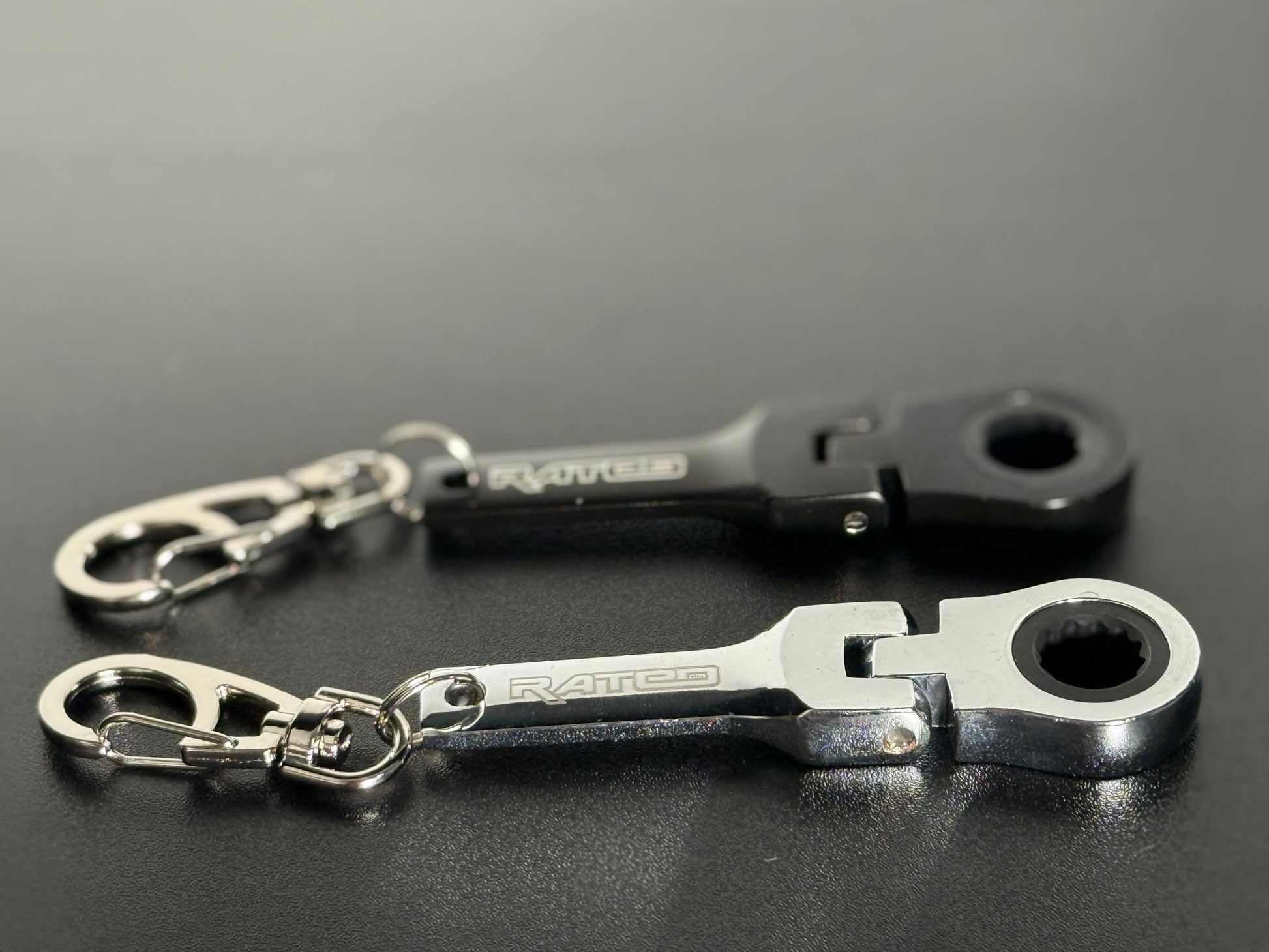 Tired of losing your 10mm wrench? I know I am! With this flexible ratcheting wrench keychain, you'll ALWAYS know where your 10mm is. Just attach it to your keys (or your hip) and never be lost without a 10mm again! Made out of stainless steel and comes in 2 colors. They have a nice sturdy feel, weighing in at 60g with our logo laser etched onto them. Grab yours today!